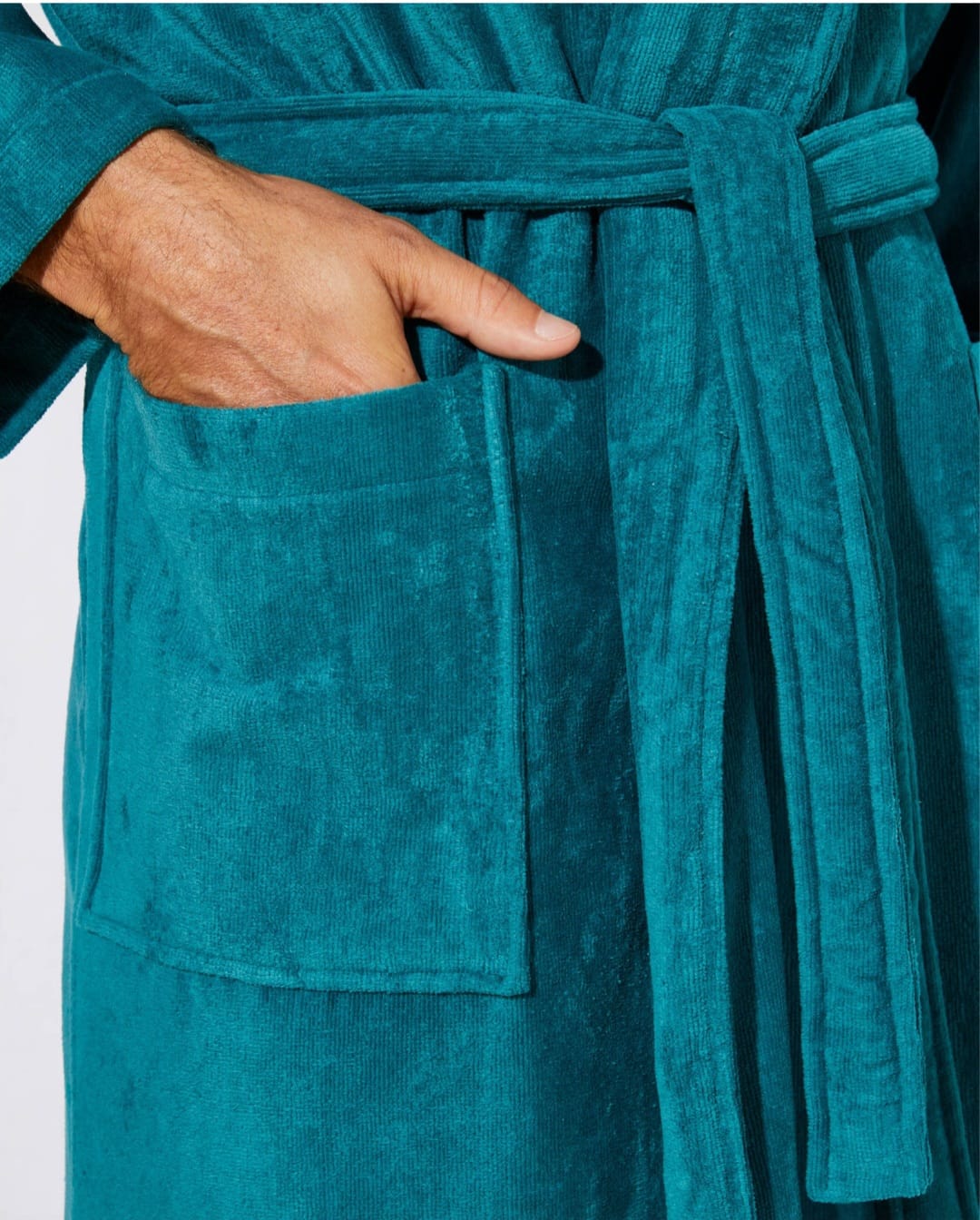 Peignoir de bain en velours couleur vert émeraude, alliant élégance, douceur et confort. Sa texture velours offre une sensation agréable et chaleureuse après la douche ou le bain.